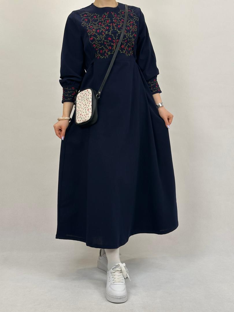 پیراهن الیاف طبیعی گلدوزی مدل نوا