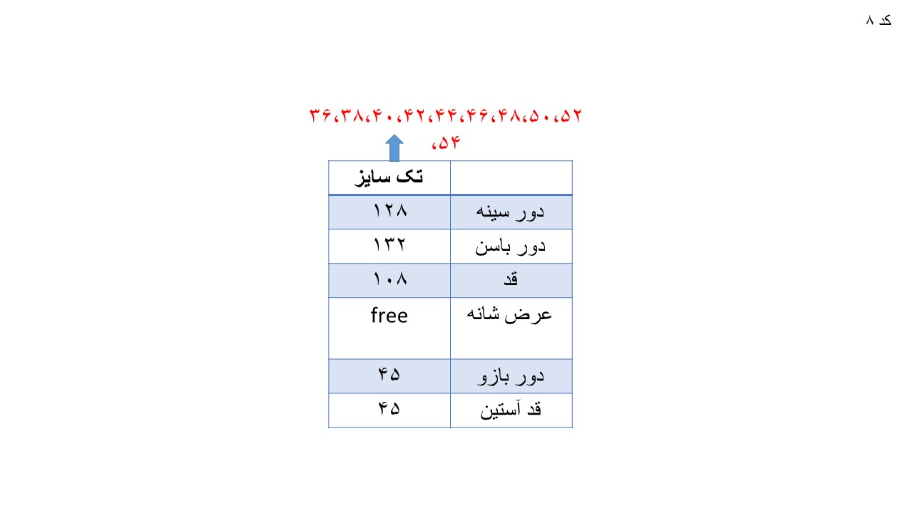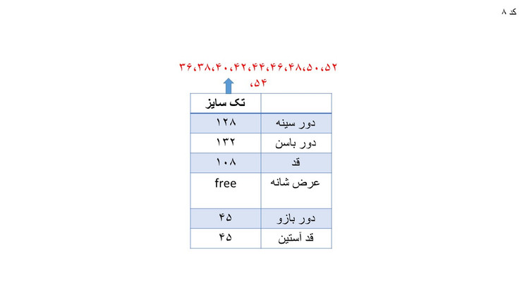اندازه هایی که در جدول زیر مشاهده می کنید متناسب با اندازه های خود محصول هست وبا توجه به جذب و اندامی نبودن طراحی محصول، تفاوت اندازه با جدول تا حداکثر یک سانتی متر از عرض در هر درز طرفین و تا حداکثر دو سانتی متر تفاوت در قد محصول را در نظر داشته باشید.