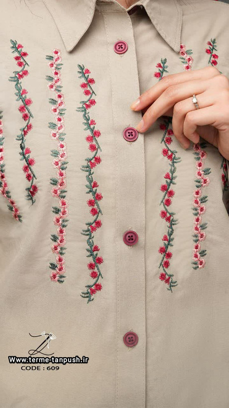 تونیک مانتو گلدوزی مدل گلریز لنین الیاف طبیعی