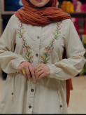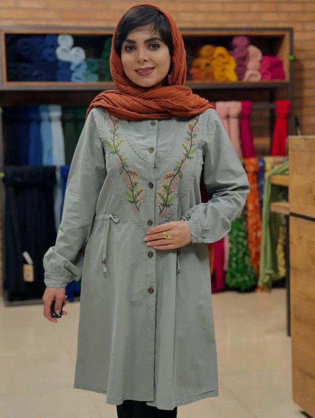 مانتو الیاف طبیعی گلدوزی شده جلو بسته مدل ندا