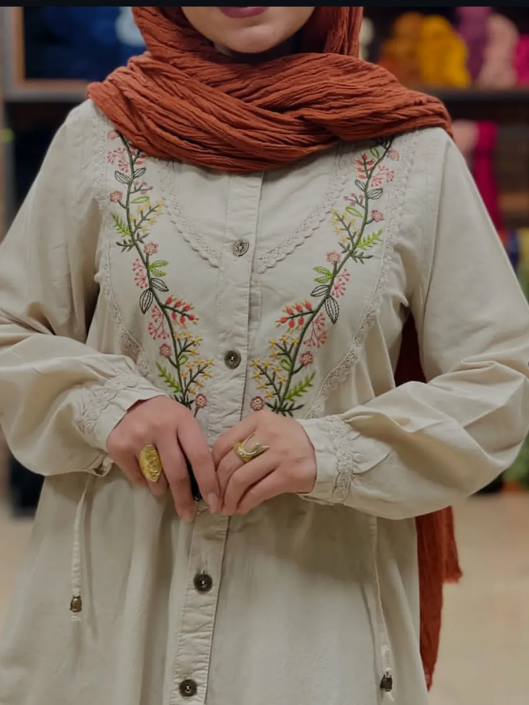 مانتو تنت گلدوزی الیاف طبیعی ندا