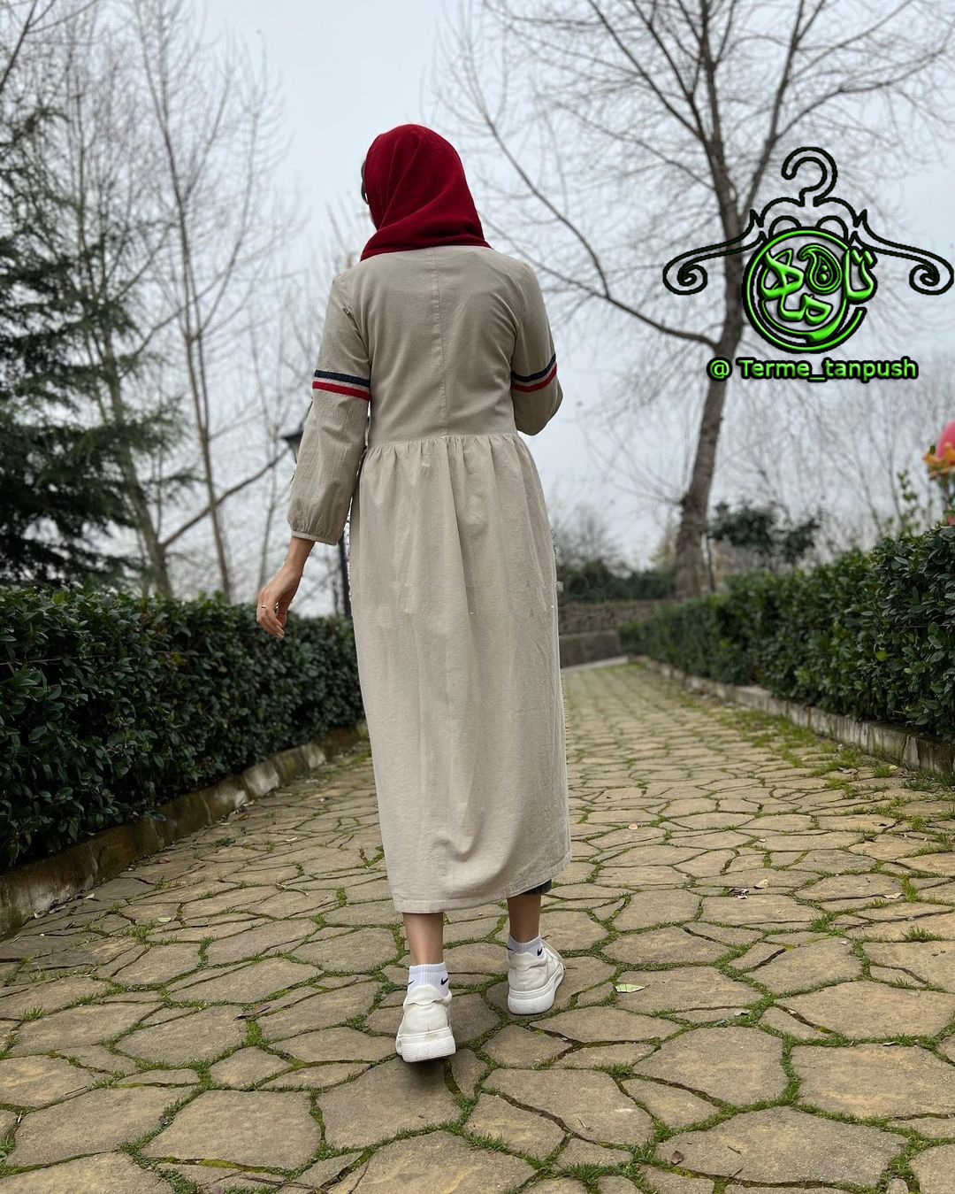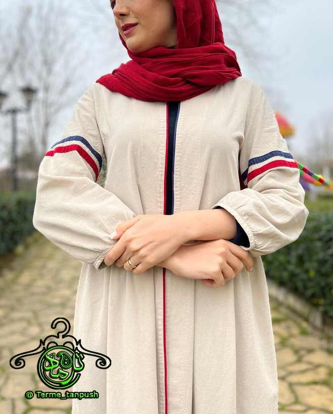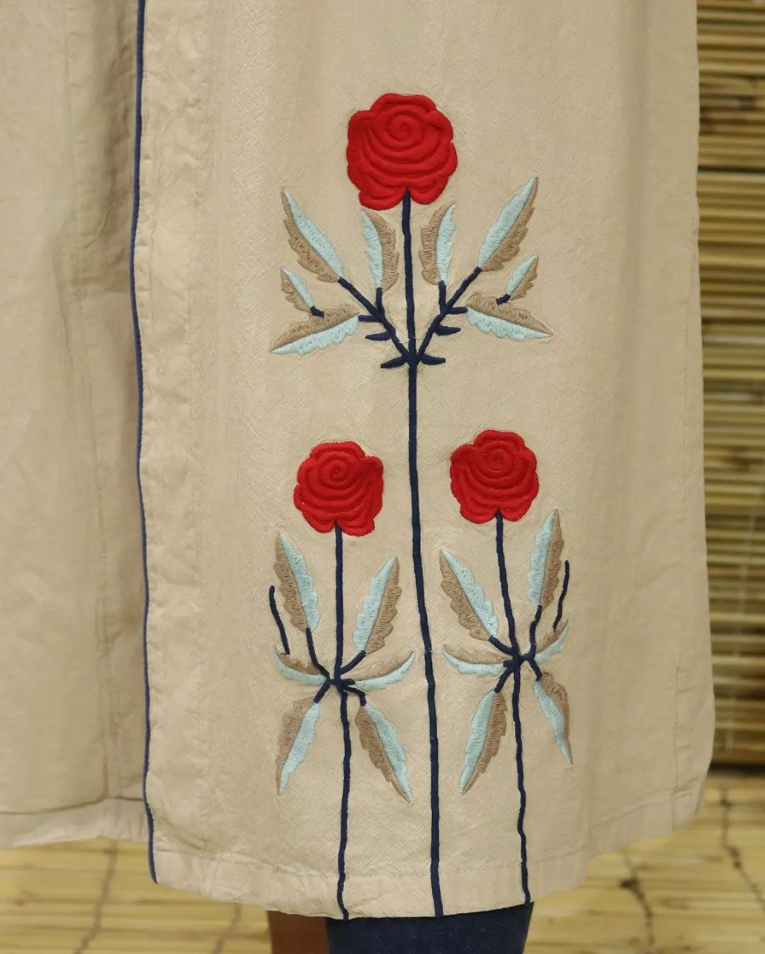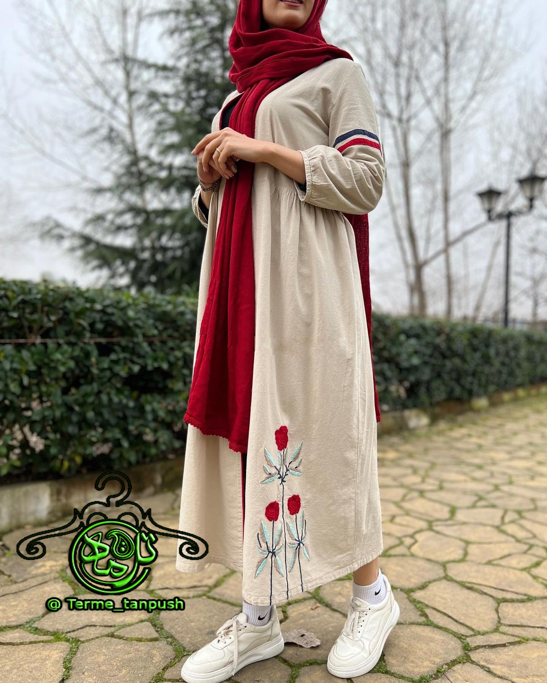 مانتو الیاف طبیعی گلدوزی شده مدل لاله