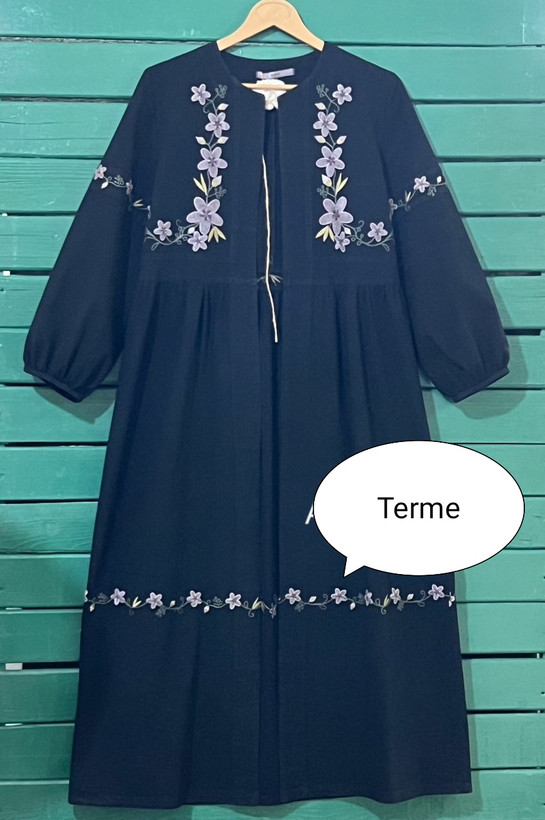 مانتو الیاف طبیعی گلدوزی شده مدل ستاره